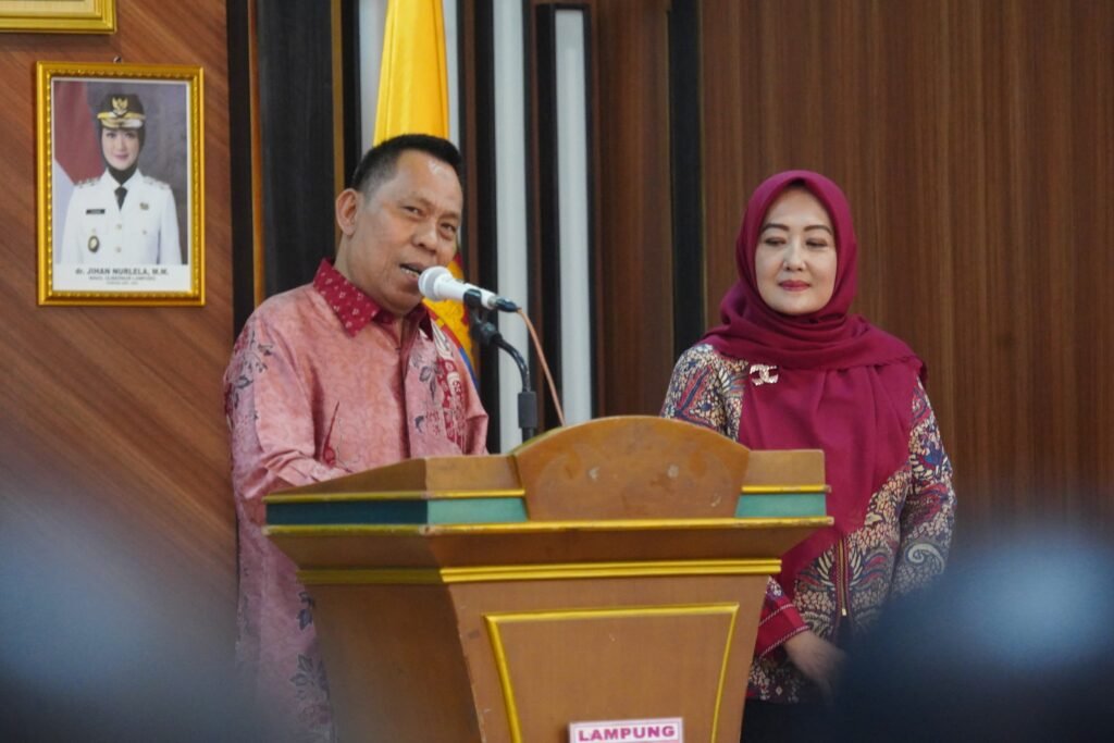 Bandar Lampung — Wakil Gubernur Lampung, Jihan Nurlela melepas purna bakti Kepala Dinas Perkebunan Provinsi Lampung, Drs. Intizam, sekaligus penyerahan tali asih dan santunan kepada aparatur sipil negara (ASN) di lingkungan Pemerintah Provinsi Lampung, Jumat (27/2/2026).