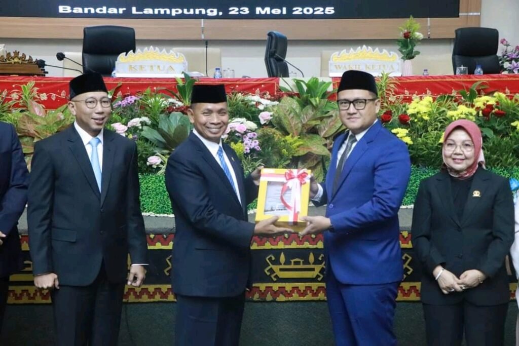 Rapat paripurna dipimpin langsung oleh Ketua DPRD Provinsi Lampung, Bapak Ahmad Giri Akbar SE. MBA. Rapat Paripurna DPRD Provinsi Lampung dengan Agenda penyerahan Laporan Keterangan Pertanggungjawaban (LKPJ) Gubernur Tahun 2024, dihadiri unsur Forkopimda, Sekretaris Daerah Provinsi Lampung, Kepala OPD, serta perwakilan dari instansi vertikal dan organisasi kemasyarakatan, yang digelar di Gedung DPRD Provinsi Lampung, Jumat (23/5/2025).
